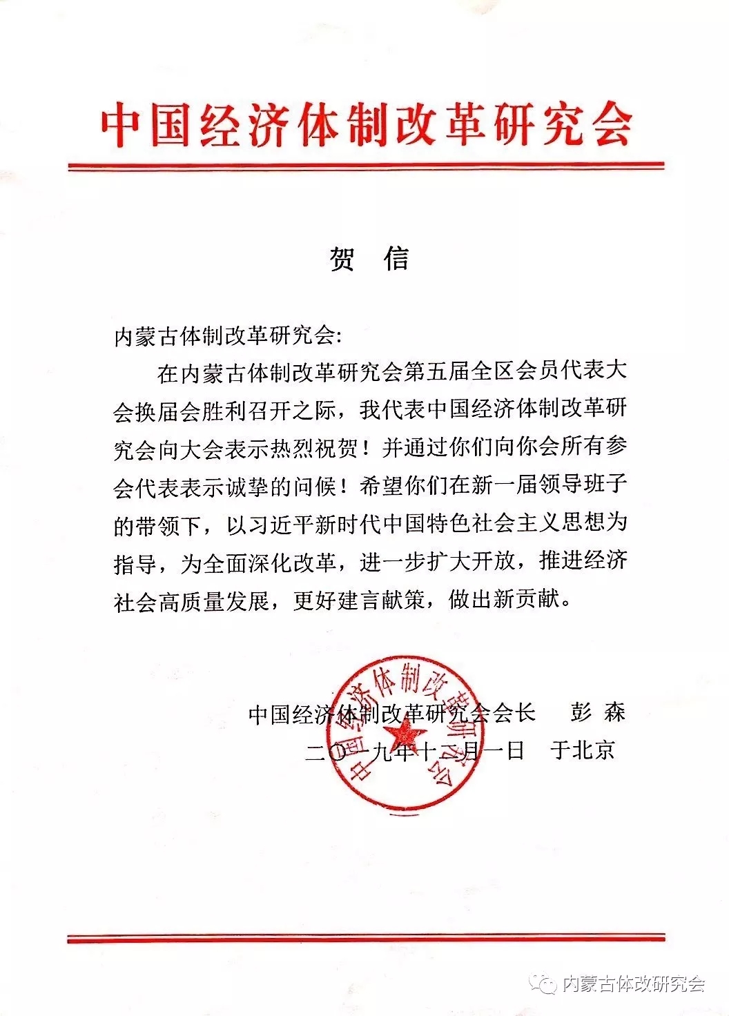 中國(guó)體制改革研究會(huì)會(huì)長(zhǎng)彭森及內(nèi)蒙古社會(huì)扶貧工作促進(jìn)會(huì)等發(fā)來(lái)賀信表示熱烈祝賀。