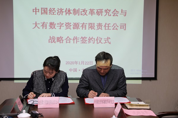 2020年1月22日上午,中國經(jīng)濟體制改革研究會與理事單位大有數(shù)字資源有限責任公司戰(zhàn)略合作備忘錄簽署儀式在我會會議室舉行。我會會長彭森、常務(wù)副會長兼秘書長趙艾、大有公司總經(jīng)理張長江等見證簽約,并就新形勢下如何充分發(fā)揮各自優(yōu)勢,拓寬合作領(lǐng)域,實現(xiàn)資源共享等方面的事宜再次進行了充分交流,進一步深化了合作共識。簽署儀式由趙艾主持。