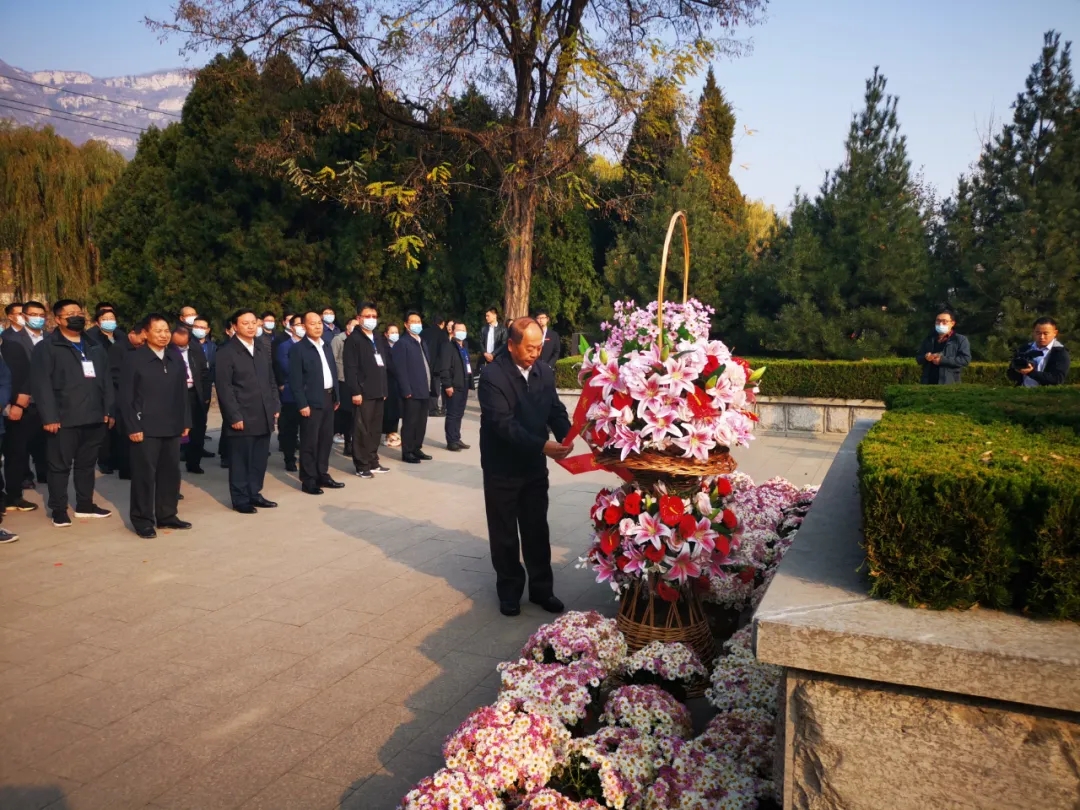 與會(huì)人員集體參觀焦裕祿紀(jì)念館并敬獻(xiàn)花籃