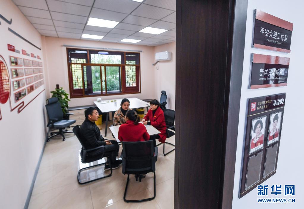 在浙江省湖州市織里鎮(zhèn)社會治理綜合服務中心的調解室,“平安大姐”工作室的志愿者對一起加工廠因加工童裝質量差而導致業(yè)主虧損的糾紛進行調解(2019年11月29日攝)。新華社記者 徐昱 攝