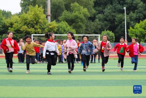 11月4日,在湖南省永州市新田縣雙碧小學(xué),孩子們?cè)谶\(yùn)動(dòng)場(chǎng)上做游戲。今年秋季學(xué)期開學(xué)以來,各地積極落實(shí)“雙減”政策,利用課后服務(wù)時(shí)間開展內(nèi)容豐富、形式多樣的課外活動(dòng),促進(jìn)學(xué)生全面發(fā)展。新華社發(fā)(劉貴雄攝)