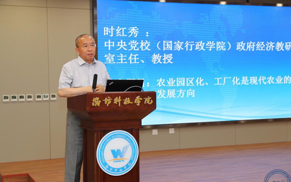 壽光市人大常委會副主任、濰坊科技學(xué)院校長李昌武在致辭中表示,濰坊市委副書記、壽光市委書記林紅玉同志在全市三級干部會議上,對我校提出全面提升辦學(xué)水平,提高社會服務(wù)能力,加快推進(jìn)碩士點(diǎn)培育建設(shè)的要求。為落實(shí)林書記講話要求,加強(qiáng)區(qū)域經(jīng)濟(jì)和“壽光模式”研究,壽光市人民政府與中國經(jīng)濟(jì)體制改革研究會等聯(lián)合成立的“新時(shí)代鄉(xiāng)村振興與區(qū)域經(jīng)濟(jì)發(fā)展研究院”掛靠學(xué)院,引進(jìn)了大批高層次人才,形成了一批富有創(chuàng)造性、建設(shè)性的學(xué)術(shù)研究成果和決策咨詢意見,“壽光模式”研究成果在國家發(fā)改委《改革內(nèi)參》刊發(fā)。成立了國家二級學(xué)會農(nóng)學(xué)思想與《齊民要術(shù)》研究會,連續(xù)成功舉辦了10屆中華農(nóng)圣文化國際研討會,師生原創(chuàng)52集動(dòng)畫片《農(nóng)圣賈思勰》在中央電視臺和山東衛(wèi)視播出。學(xué)校組建了博士、教授農(nóng)學(xué)科研服務(wù)團(tuán)隊(duì),成立了蔬菜產(chǎn)業(yè)學(xué)院、農(nóng)業(yè)技術(shù)培訓(xùn)基地,自主研發(fā)蔬菜品種28個(gè),在全國7個(gè)省區(qū)建立了育種基地,開發(fā)運(yùn)營了壽光市農(nóng)業(yè)智慧監(jiān)管服務(wù)公共平臺,打造了覆蓋設(shè)施農(nóng)業(yè)全產(chǎn)業(yè)鏈的專業(yè)服務(wù)體系,為創(chuàng)新提升“壽光模式”和鄉(xiāng)村振興戰(zhàn)略的實(shí)施提供了有力支撐。