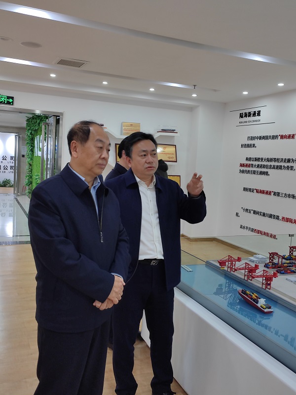調(diào)研期間,趙艾和調(diào)研組一行還深入重慶國際物流樞紐展館、陸海新通道運(yùn)營有限公司等實(shí)地了解情況,聽取意見。中新示范項(xiàng)目管理局副局長唐衛(wèi)東等陪同調(diào)研。