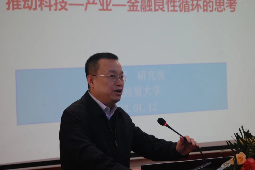 史玉強(qiáng)在書面致辭中說,此次會議雖然規(guī)模不大,時(shí)間也不長,但內(nèi)容很豐富,層層較高,很有特點(diǎn),是一個(gè)小而精、小而美的高質(zhì)量研討會。會議以貫徹黨的二十大精神,深化改革,推動經(jīng)濟(jì)高質(zhì)量發(fā)展為主題,深入研究產(chǎn)業(yè)、科技、金融良性驅(qū)動,建設(shè)現(xiàn)代化產(chǎn)業(yè)體系,是當(dāng)前經(jīng)濟(jì)工作重點(diǎn)。會議組織形式新穎,兩個(gè)研究會、一所大學(xué)、一家銀行聚集研討,各有特點(diǎn),各有優(yōu)勢,一定會推出高水平成果。參會演講的專家都是業(yè)內(nèi)、省內(nèi)的頂級專家,是一次名副其實(shí)的精英聚會。會議堅(jiān)持虛實(shí)結(jié)合,設(shè)計(jì)了銀企對接環(huán)節(jié)。