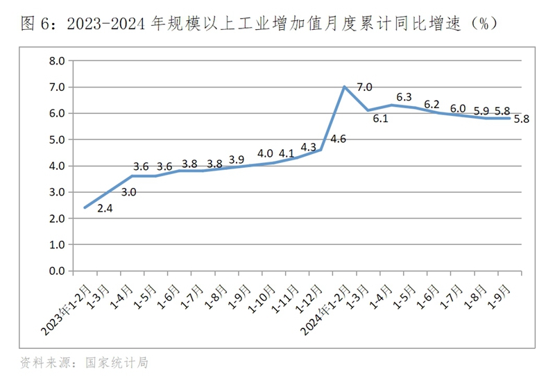 (一)工業(yè)生產(chǎn)增速基本上持續(xù)回落,9月份回升。規(guī)模以上工業(yè)增加值增速年初開(kāi)局走高,1-2月份同比增長(zhǎng)7.0%,3月份增速回落,4月份增速回升,但自此以后持續(xù)走低,到8月份增速為4.5%,9月份增速呈現(xiàn)回升,同比增長(zhǎng)5.4%。