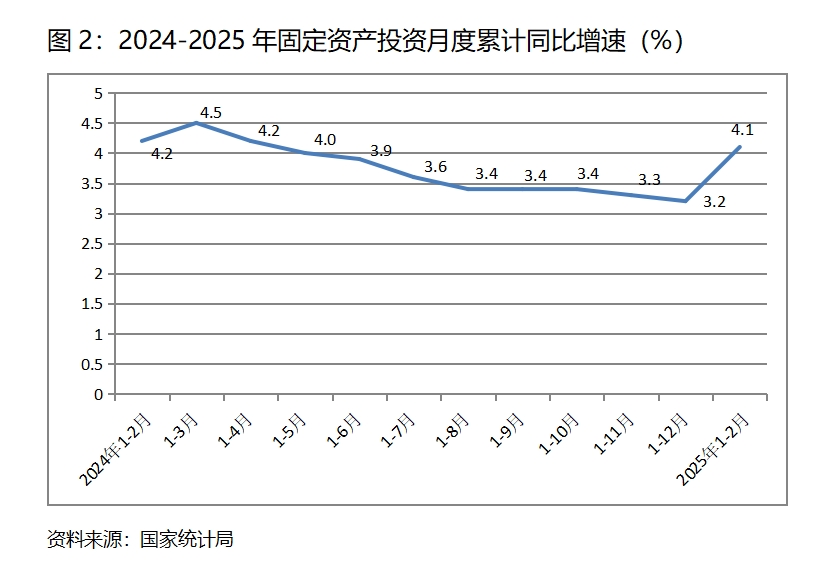 (二)投資增速由落轉(zhuǎn)升。1-2月份,固定資產(chǎn)投資同比增長(zhǎng)4.1%,比上年1-12月份增長(zhǎng)3.2%回升了0.9個(gè)百分點(diǎn),上年1-12月份增速比上年1-11月份回落了0.1個(gè)百分點(diǎn)。1-2月份國(guó)有控股投資同比增速比上年1-12月份回升1.3個(gè)百分點(diǎn);民間投資保持零增長(zhǎng),上年1-12月份為下降0.1%。三次產(chǎn)業(yè)投資中,第一產(chǎn)業(yè)投資增速回升9.6個(gè)百分點(diǎn),第二產(chǎn)業(yè)投資增速回落0.6個(gè)百分點(diǎn),第三產(chǎn)業(yè)投資增速由上年1-12月份下降1.1%轉(zhuǎn)為增長(zhǎng)0.7%。值得關(guān)注的是,民間投資和第三產(chǎn)業(yè)投資增長(zhǎng)都還比較緩慢。